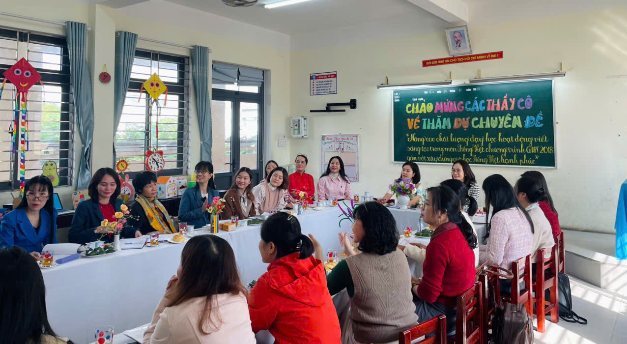 Sau phần báo cáo và tiết dạy minh họa, các thầy cô đã tích cực thảo luận, chia sẻ kinh nghiệm, góp ý về phương pháp và hình thức tổ chức dạy học nội dung Tập làm văn trong môn Tiếng Việt, nhằm hướng đến những giờ học hiệu quả – vui tươi – hấp dẫn đối với học sinh.