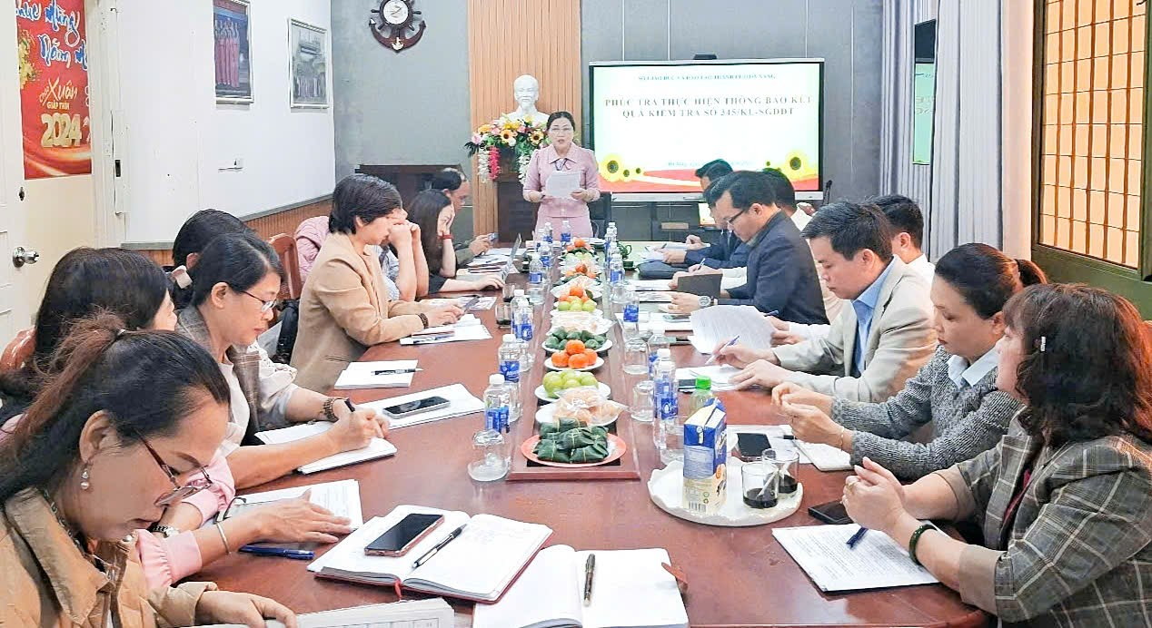 Thực hiện kế hoạch tiến hành kiểm tra đã được Giám đốc Sở GDĐT phê duyệt, ngày 07/01/2025 Đoàn kiểm tra đã tiến hành kiểm tra tại Phòng GDĐT quận Liên Chiểu, Trường THCS Nguyễn Bỉnh Khiêm (LC) và Trường THCS Nguyễn Chơn. Đoàn kiểm tra có nhiệm vụ kiểm tra việc thực hiện các kiến nghị được nêu tại Thông báo số 345/TB-SGDĐT ngày 31/01/2024 của Giám đốc Sở GDĐT về việc kiểm tra công tác quản lý, hoạt động dạy học tại Phòng GDĐT, các trường trên địa bàn quận Liên Chiểu.